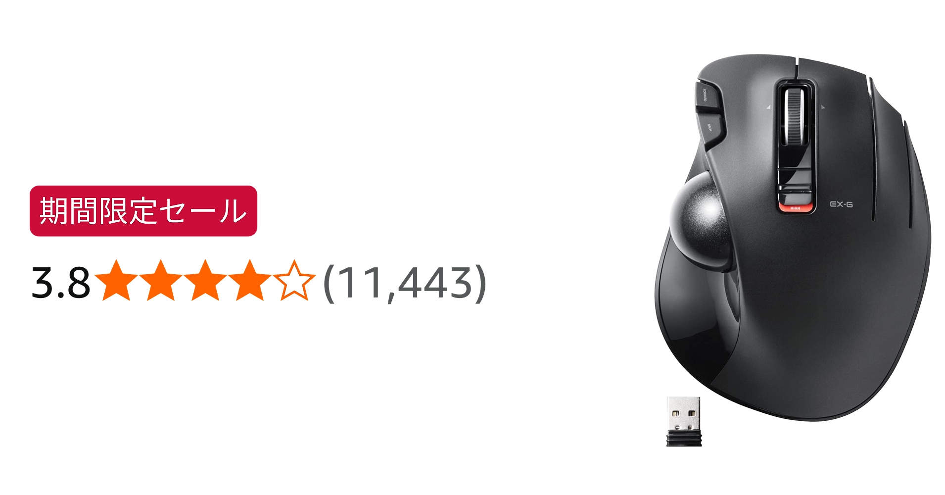 セール: エレコム ワイヤレス トラックボールマウス EX-G 握りの極み 6ボタン チルトホイール(左右スクロール) ブラック M-XT3DRBK
