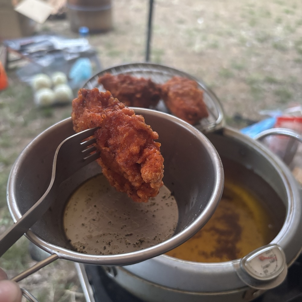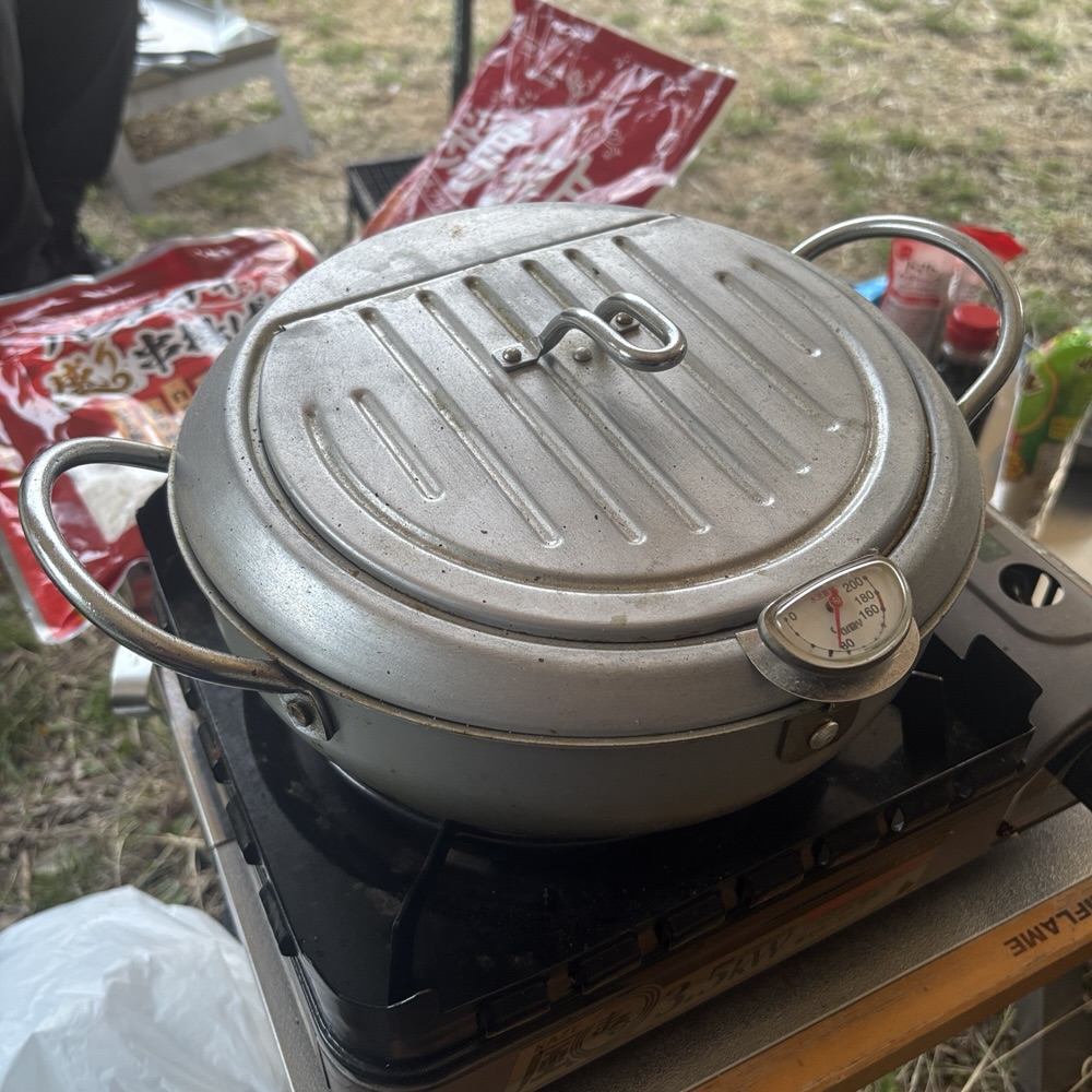 今回はアゲリシャスキャンプと言う名でキャンプするので揚げ鍋用意!