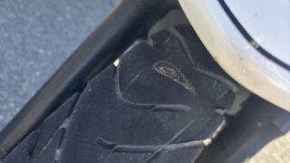 アドレスv125s少しエアのメンテナンスを怠ったこんな変摩耗穴あいてる!なんて勿体無い溝の厚みIRCのMB90トゥクトゥ...